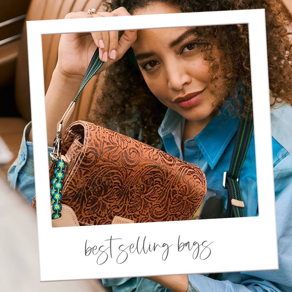 • Bags and Wallets Collection for Women at Vixen Collection in Seattle WA | Woman in black pants holding two bags.