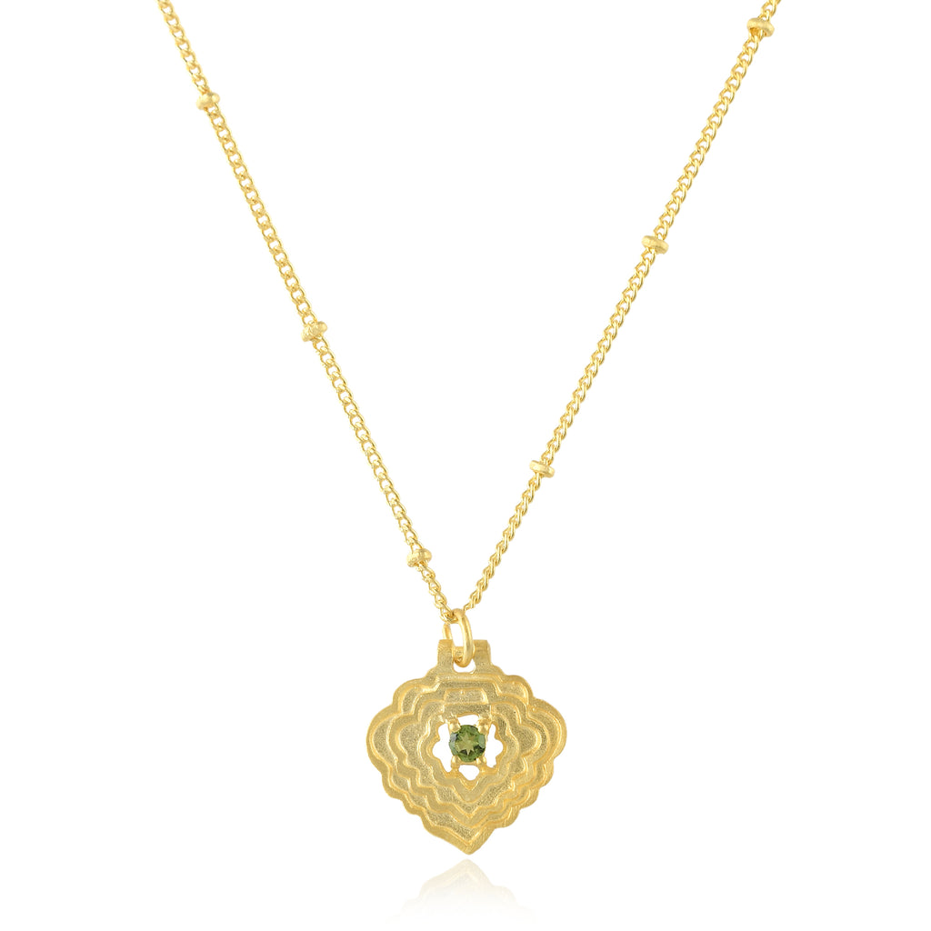 Show off your high-end style with the diamond pendant chain! This traditional piece is handcrafted with love in India and features a stunning green tourmaline stone in the center of a diamond-shaped pendant. Make a statement like no other!