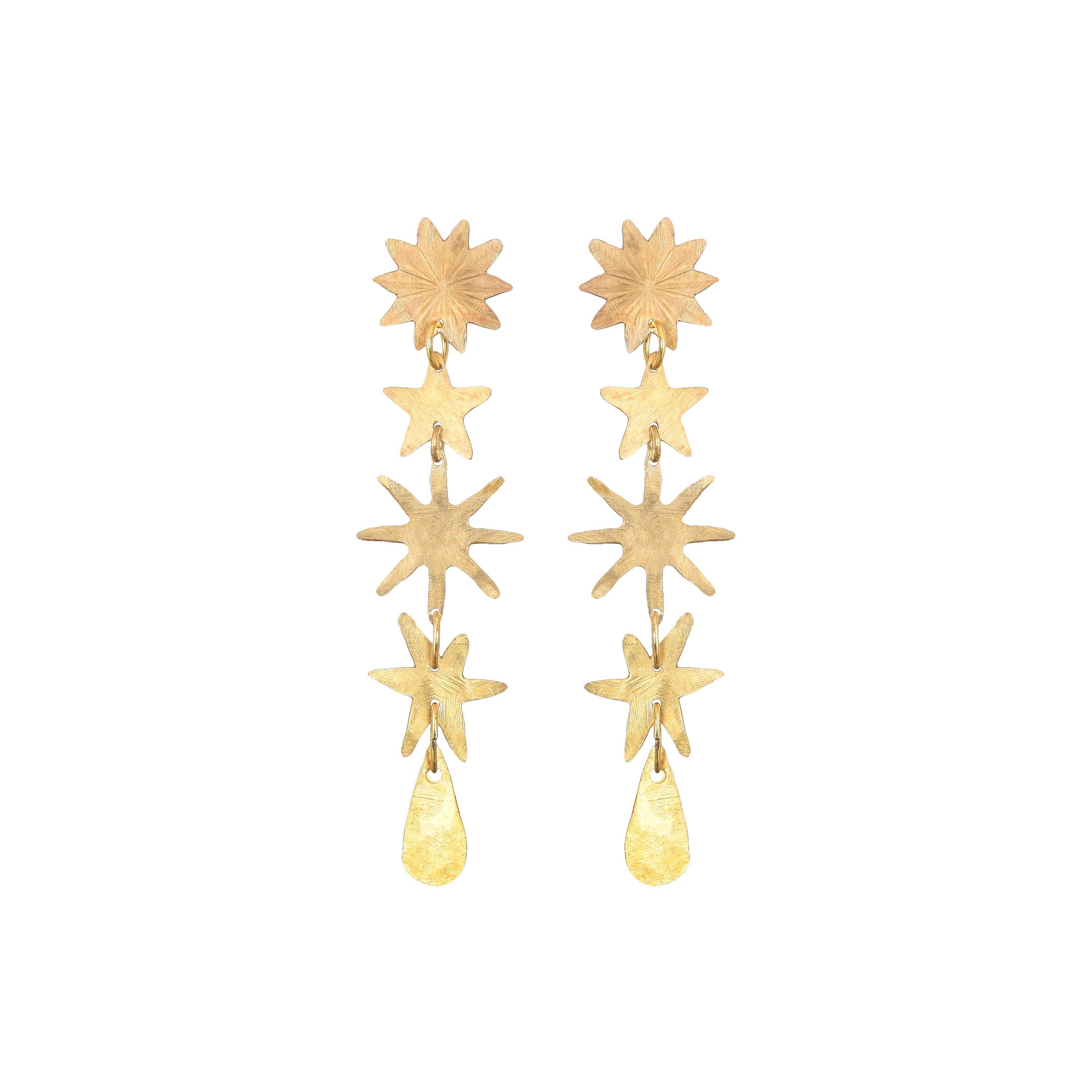 A shower of celestial shapes shimmers in hand-hammered brass.