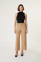 Stay warm and stylish with Fiona Faux Suede Wide Leg pants. The high rise pull on style and soft faux suede material are perfect for cooler weather. The trendy cropped wide leg design adds a touch of fashion while providing a comfortable fit. A versatile addition to any wardrobe.